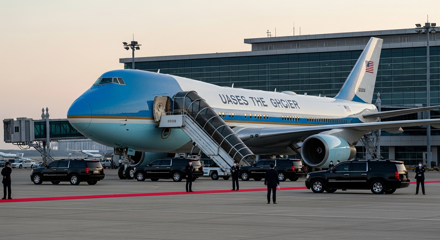 백악관이 올린 FAFO 게시물 중에서 특히 화제가 된 건 사진 배경이 한국 부산 김해국제공항이었다는 거예요. 이 사진은 2025년 10월 30일, 트럼프 대통령이 APEC 정상회의 참석차 방한해서 시진핑 중국 국가주석과 김해공항 공군기지에서 회담한 직후 찍은 거였어요.